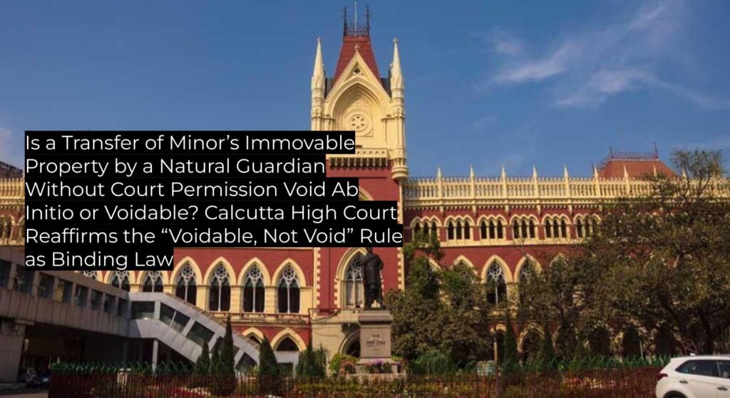 The Calcutta High Court has clarified and reaffirmed that a sale of a minor’s immovable property by a natural guardian without prior court permission is not void ab initio but only voidable at the instance of the minor or someone claiming under them. The judgment upholds settled statutory interpretation under Section 8(3) of the Hindu Minority and Guardianship Act, 1956, and provides binding authority on mutation proceedings in West Bengal.