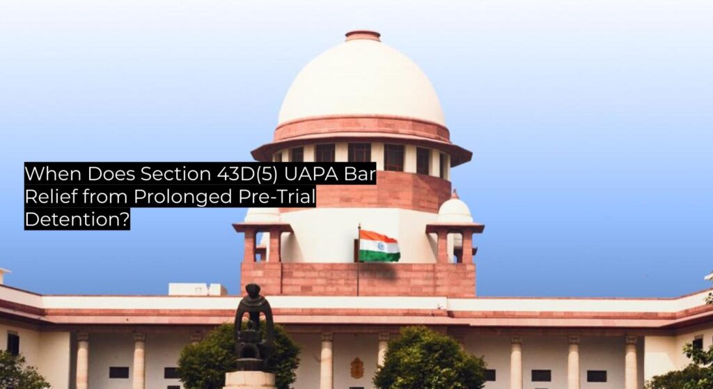 • Does Section 43D(5) UAPA bar bail when prima facie material exists, even after prolonged custody?