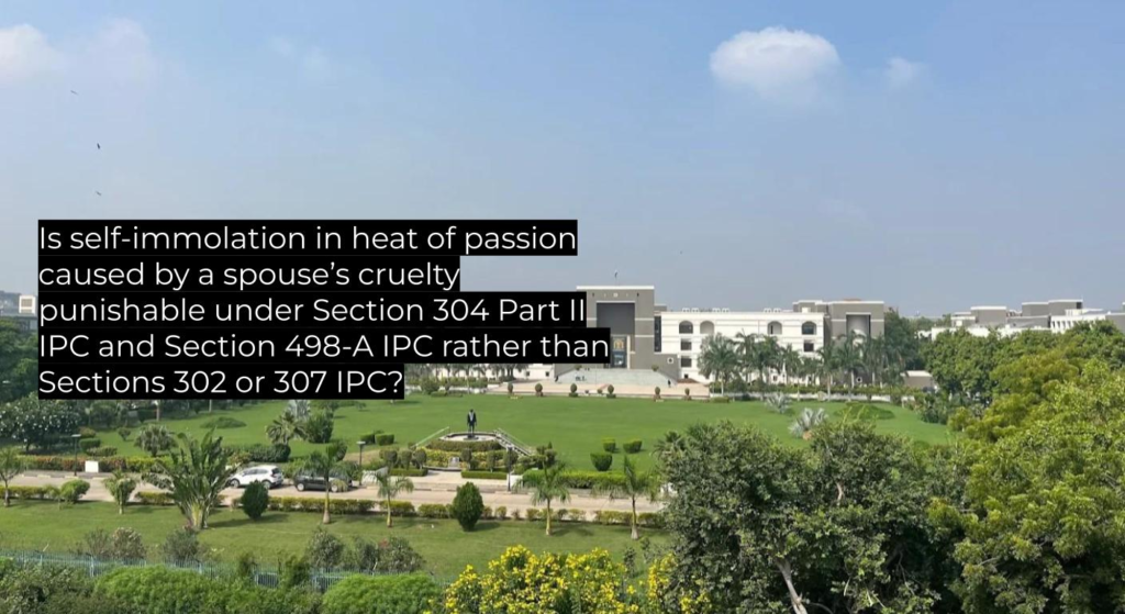 - The victim’s self-immolation in heat of passion satisfies “knowledge” of likely death but not “intention,” fitting Section 304 Part II IPC rather than Section 304 Part I IPC.
