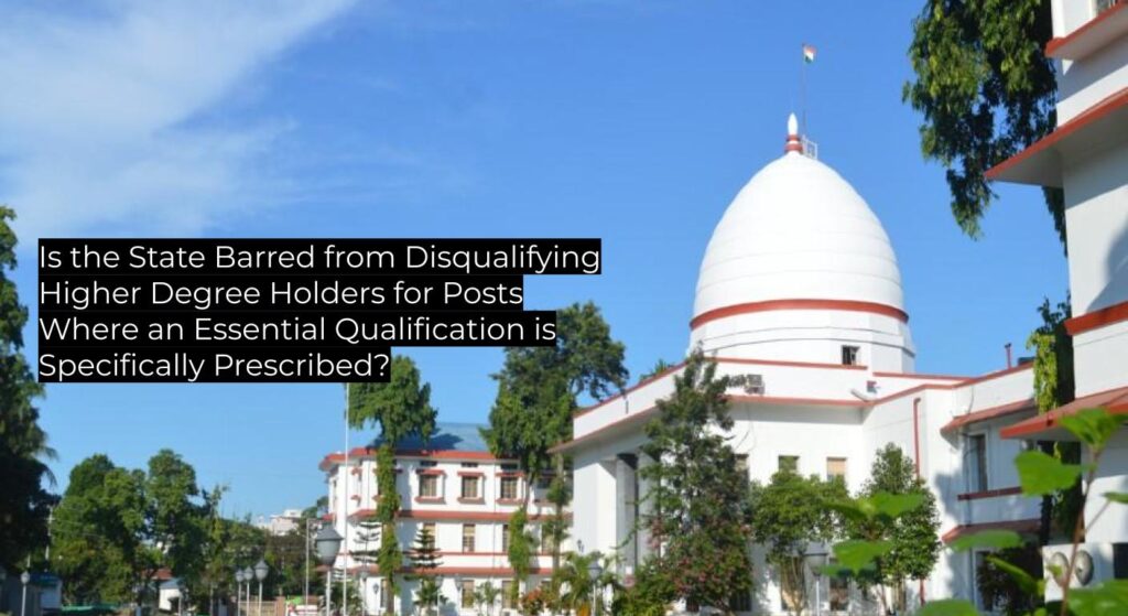 The Gauhati High Court holds that State authorities are empowered to prescribe essential qualifications for recruitment, and a higher qualification (such as a degree) does not automatically subsume a lower prescribed essential qualification (such as a diploma). This decision upholds established Supreme Court precedent, clarifying that unless rules expressly permit, candidates lacking the specific essential qualification—even if they possess higher qualifications—may validly be excluded. The judgment serves as binding authority for public service recruitment cases across subordinate courts and the relevant jurisdictions.