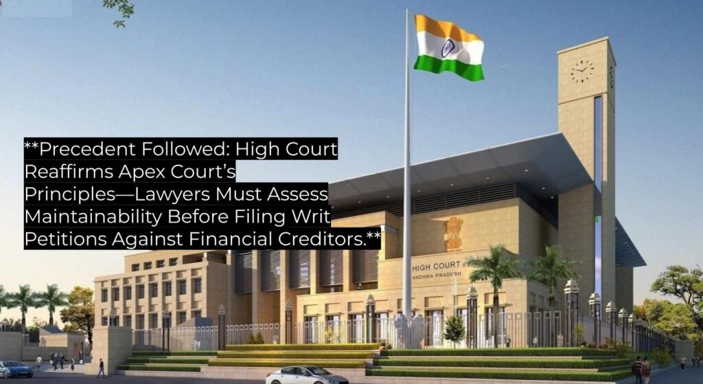 **Precedent Followed: High Court Reaffirms Apex Court’s Principles—Lawyers Must Assess Maintainability Before Filing Writ Petitions Against Financial Creditors.**
