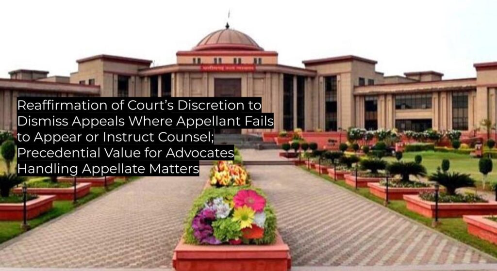 The Chhattisgarh High Court reiterated that when an appellant does not appear or provide instructions to counsel even after service of notice and special personal call, the court is justified in dismissing the appeal for non-prosecution. This order upholds existing procedural law and serves as binding authority for future cases involving dismissal for non-prosecution in civil appeals.