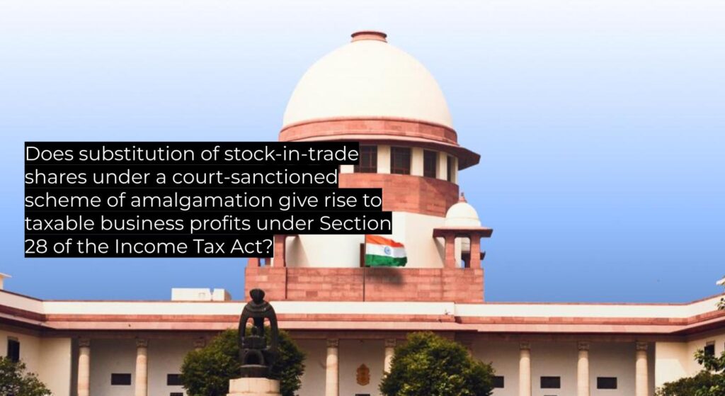 | Facts as Summarised by the Court | Investment companies of a group held shares of an operating company as part of promoter holding. Under court-approved amalgamation (appointed date 1 April 1995, sanction filed 22 Nov 1996), shares of the amalgamating company were extinguished and replaced by shares of the amalgamated company at a fixed ratio. Assessees claimed exemption under Section 47(vii), treating shares as capital assets. AO denied exemption treating them as stock-in-trade and taxed value difference under Section 28. Tribunal allowed appeal holding no “transfer” and no profit accrues without sale. High Court remanded to determine nature of holding, observing that substitution of trading stock could yield taxable business income under Section 28. |
