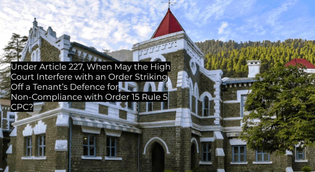 The dispute arose from a tenancy where the landlord claimed rent at the rate of Rs.800/- per month, while the tenant deposited rent at Rs.500/- per month in court. The landlord filed an eviction suit (SCC Suit No.03 of 2024), and upon the tenant’s failure to deposit at the claimed rate with interest, the trial court struck off the defence under Order 15 Rule 5 CPC. The tenant challenged the order via a writ petition under Article 227, arguing compliance based on a different rent rate. The High Court upheld the trial court’s action.