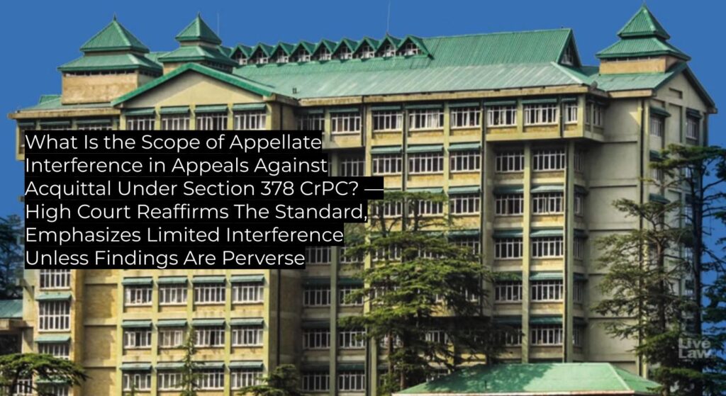 The High Court reaffirmed that interference in appeals against acquittal is permitted only if the judgment is perverse, based on misreading or omission of material evidence, and when no two reasonable views are possible—thus upholding well-settled Supreme Court precedent and offering binding authority for limited appellate review in criminal acquittals.