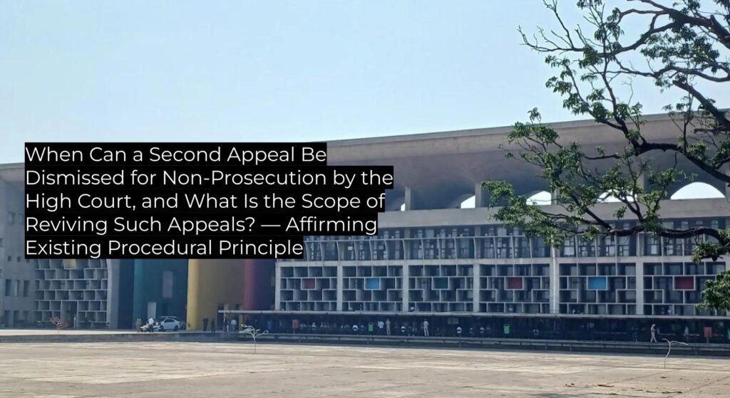 - Reaffirms that High Courts may dismiss second appeals for non-prosecution when appellant and counsel are untraceable and no fresh address or representation is on record.