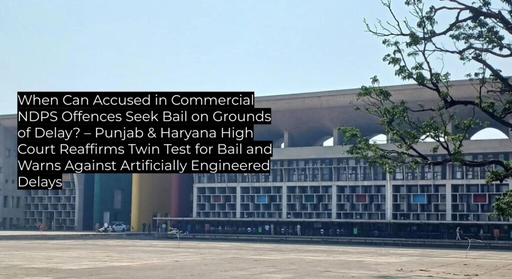 The Punjab & Haryana High Court (2025) clarified that in prosecutions under the NDPS Act involving massive commercial quantities, bail on the ground of delay in trial due to right to speedy trial under Article 21 cannot be claimed if the delay is a result of intentional, collusive, or engineered tactics by co-accused. The judgment upholds and elaborates the precedential twin test under Section 37 NDPS Act for bail, issues new directives for expediting trials, and stands as binding authority for subordinate courts in Punjab, Haryana, and Chandigarh, with strong persuasive value for NDPS courts pan-India.