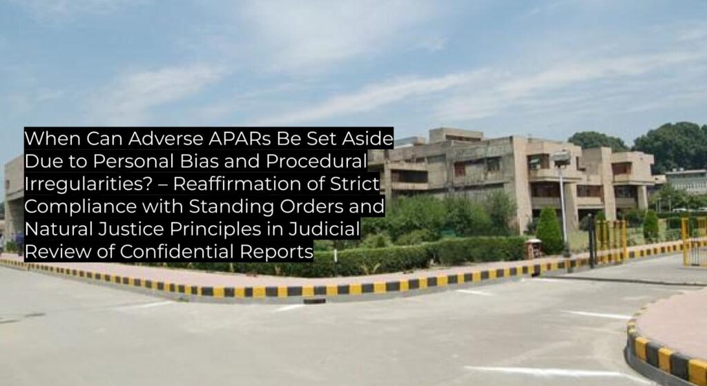 The High Court of Jammu and Kashmir and Ladakh confirms that Annual Performance Appraisal Reports (APARs) vitiated by personal bias, violation of minimum supervision requirements, lack of reasoned orders, and delayed or mechanical disposal of representations are liable to be quashed. The judgment strictly enforces departmental guidelines and Supreme Court precedent, providing binding authority for service matters involving adverse confidential reports in Central Armed Police Forces and analogous government entities.