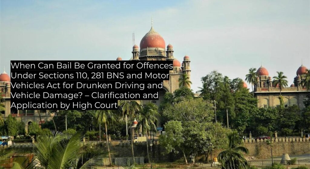 The Telangana High Court clarifies bail eligibility in offences involving vehicle damage and drunken driving when no injury is caused, reaffirms the discretionary application of bail considering the facts, stage of investigation, and duration of incarceration; affirms established precedent for similar cases under BNS and MV Act, and is binding on subordinate courts in Telangana.