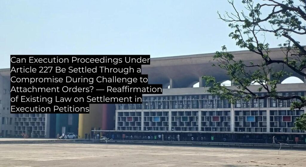 The Punjab and Haryana High Court held that execution proceedings—including auction of an attached property—may be stayed and then fully disposed of based upon a consensus between the judgment debtor and decree holder, with detailed payment terms recorded as part of the order. This judgment clarifies the court’s approach to consent orders in execution matters under Article 227, reaffirming established principles and providing binding precedent for subordinate courts in similar scenarios.