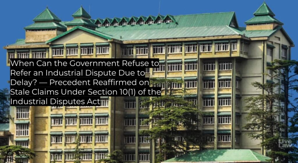 The Himachal Pradesh High Court reaffirms that the government may refuse to refer an industrial dispute to the Labour Court if the claim is stale or suffers from unexplained delay and acquiescence. The division bench follows and applies binding Full Bench and Supreme Court precedents, holding such refusal as justified under Section 10(1) of the Industrial Disputes Act, 1947. This is a binding authority for all courts in Himachal Pradesh and persuasive nationwide, particularly relevant for government service and labour law disputes involving delayed claims.