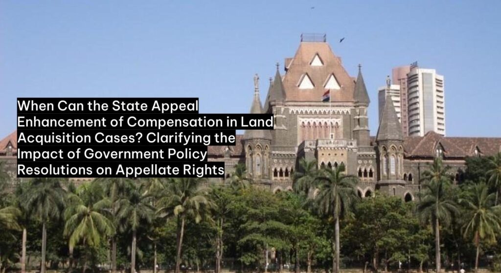 The Bombay High Court has reaffirmed that where the Reference Court’s enhancement of compensation is within four times the amount awarded by the Special Land Acquisition Officer (SLAO), and the State’s own Government Resolution prohibits appeals in such cases, first appeals by the State are to be dismissed. This ruling upholds departmental policy, clarifies limits on the State’s appellate authority in land acquisition matters, and sets binding precedent for subordinate courts and authorities handling similar compensation appeals in Maharashtra.