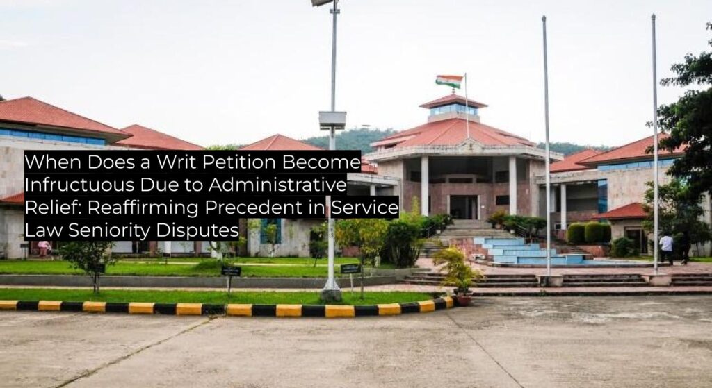 Petitioners sought a direction to include their names in the seniority list of Youth Officers/Supdt.(P)/Coaches in the Directorate of Youth Affairs & Sports, Manipur. During the writ petition’s pendency, the respondents included the petitioners’ names at serial numbers 24, 25, and 26 via notification dated 08.10.2025. Both parties confirmed the relief had been granted, thus necessitating closure of proceedings as infructuous. |