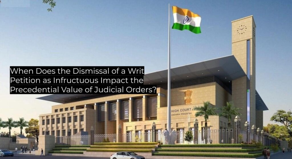 A High Court judgment clarifies that dismissal of a writ petition as infructuous does not result in a substantive ruling on the questions of law raised, limiting its precedential value in the context of administrative decisions regarding appointments.