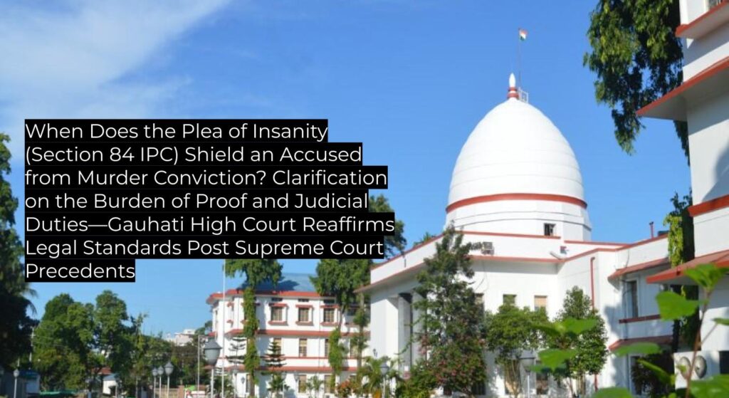 The Gauhati High Court clarifies that the burden to prove unsoundness of mind at the time of the offence (for protection under Section 84 IPC) firmly rests on the accused and must be established by preponderance of probability. The Court affirms previous Supreme Court and High Court rulings, explaining when judicial intervention by way of medical examination is warranted, and reasserts that absence of motive alone or abnormal conduct is not sufficient to prove legal insanity. This decision stands as binding authority for courts in Assam, Nagaland, Mizoram, and Arunachal Pradesh.