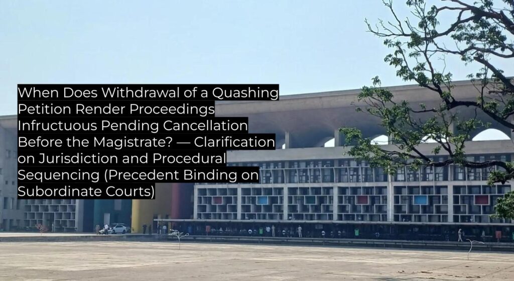 When Does Withdrawal of a Quashing Petition Render Proceedings Infructuous Pending Cancellation Before the Magistrate? — Clarification on Jurisdiction and Procedural Sequencing (Precedent Binding on Subordinate Courts)