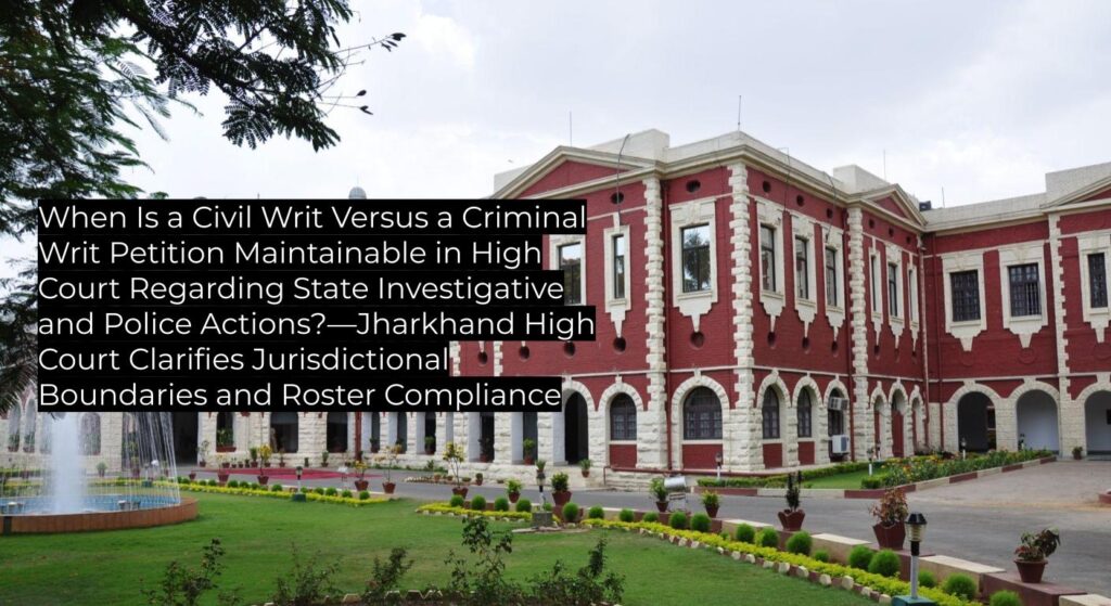 When Is a Civil Writ Versus a Criminal Writ Petition Maintainable in High Court Regarding State Investigative and Police Actions?—Jharkhand High Court Clarifies Jurisdictional Boundaries and Roster Compliance