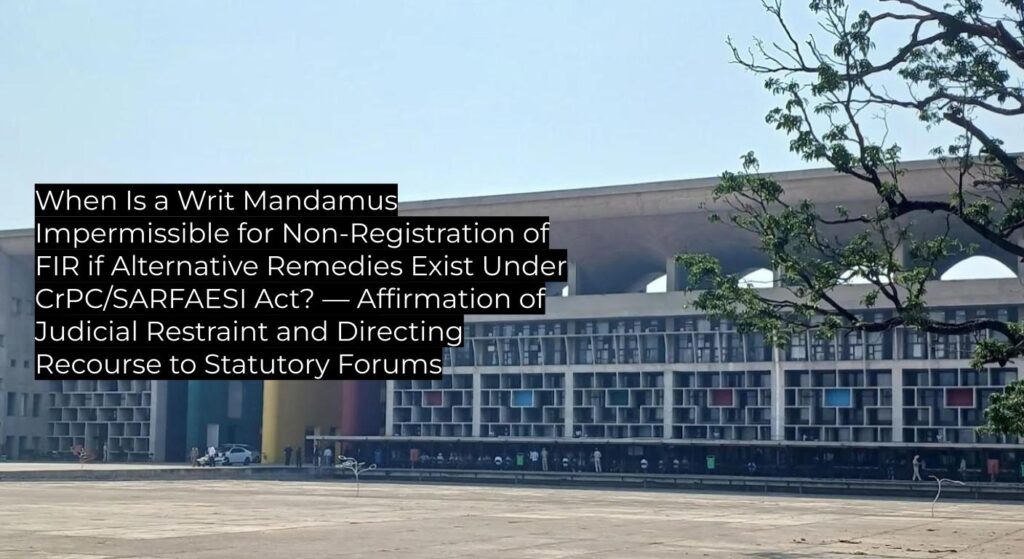 The Punjab & Haryana High Court reaffirms that writ jurisdiction is not to be invoked when alternative efficacious statutory remedies—such as under Section 156(3) CrPC—are available for seeking registration of FIR and redressal of related grievances; upholding established Supreme Court precedents and reinforcing the doctrine of alternate remedy, with dispositive value for financial, banking, and property-related criminal complaints.