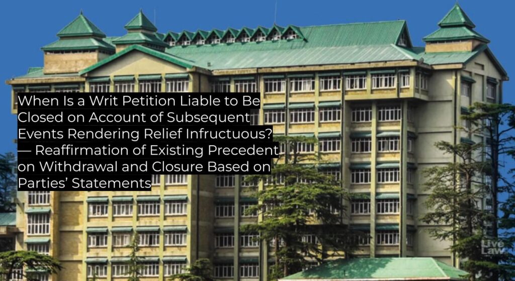 - Reaffirms that where relief sought in a writ petition becomes infructuous due to subsequent events, and the petitioner so instructs, the Court will ordinarily accept withdrawal and close the petition.