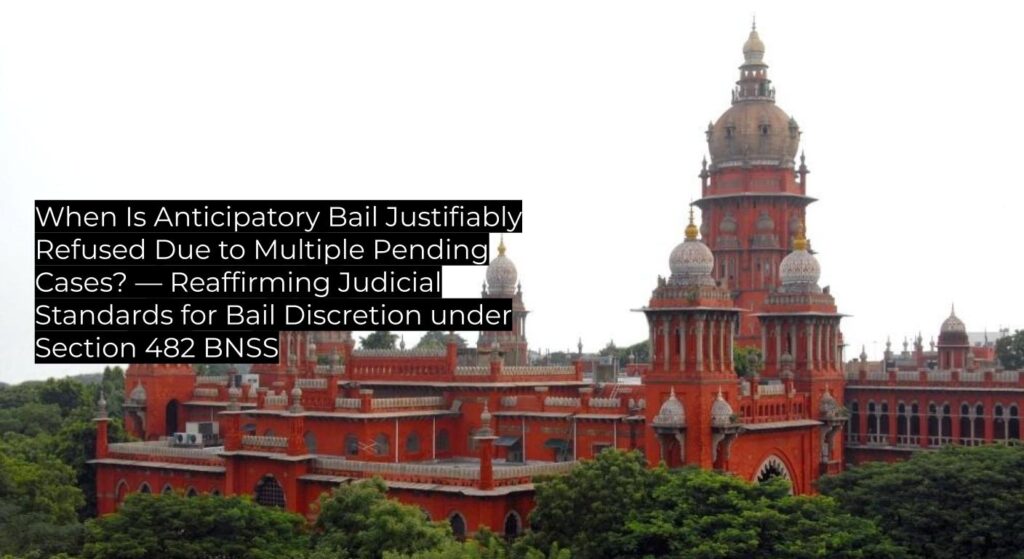 When Is Anticipatory Bail Justifiably Refused Due to Multiple Pending Cases? — Reaffirming Judicial Standards for Bail Discretion under Section 482 BNSS