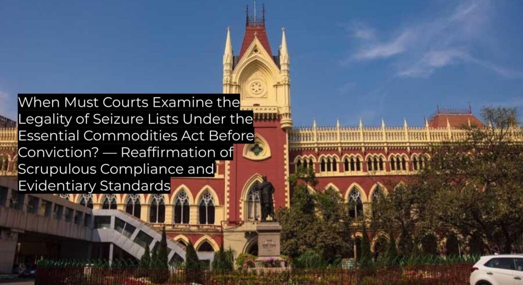 The Calcutta High Court held that a conviction under Section 7(1)(a)(ii) of the Essential Commodities Act cannot be sustained if the seizure list—the foundation of prosecution—is not shown to comply with legal requirements. The judgment sets a binding precedent, emphasizing strict evidentiary standards for seizure procedures in E.C. Act cases and nullifying convictions resting on deficient seizure documentation.