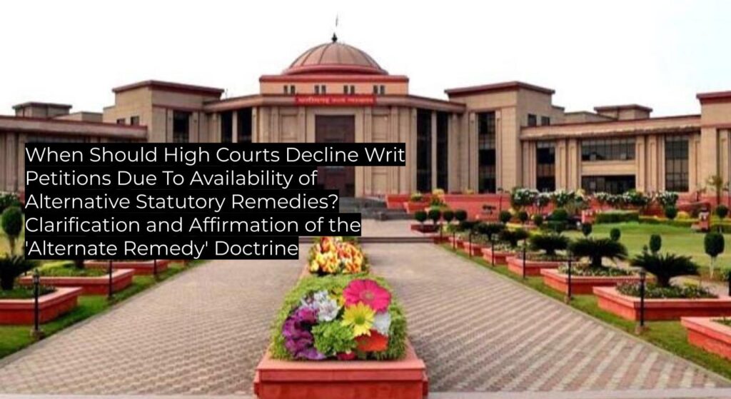 - Reaffirms that High Courts will not entertain writ petitions under Article 226 if an effective alternative statutory remedy exists, unless exceptional circumstances are shown.