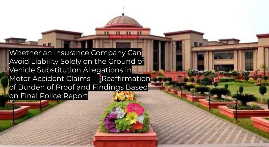 Whether an Insurance Company Can Avoid Liability Solely on the Ground of Vehicle Substitution Allegations in Motor Accident Claims — Reaffirmation of Burden of Proof and Findings Based on Final Police Report