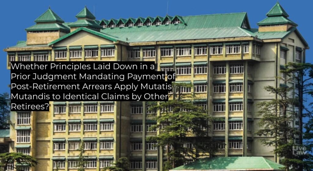 - The Himachal Pradesh High Court affirms that once an issue relating to post-retirement benefits is conclusively determined, identical claims must be disposed of on the same terms, applying the earlier precedent mutatis mutandis.