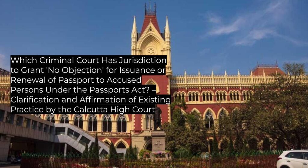 Which Criminal Court Has Jurisdiction to Grant ‘No Objection’ for Issuance or Renewal of Passport to Accused Persons Under the Passports Act? – Clarification and Affirmation of Existing Practice by the Calcutta High Court